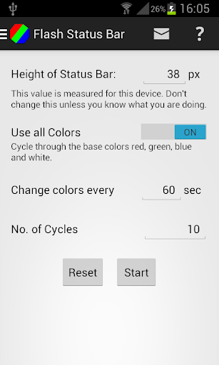 This app's main feature is to explicitly flash the Status Bar in the colours Red, Green, Blue and White automatically to get rid of display burn-ins. I have used it extensively during the development and testing stages and can already see improvement for my display. It comes preloaded with settings for all common phones, so you don't have to know the height of your status bar in pixels. It does not require root. To better identify burn-ins and also dead pixels, a screen test is included.